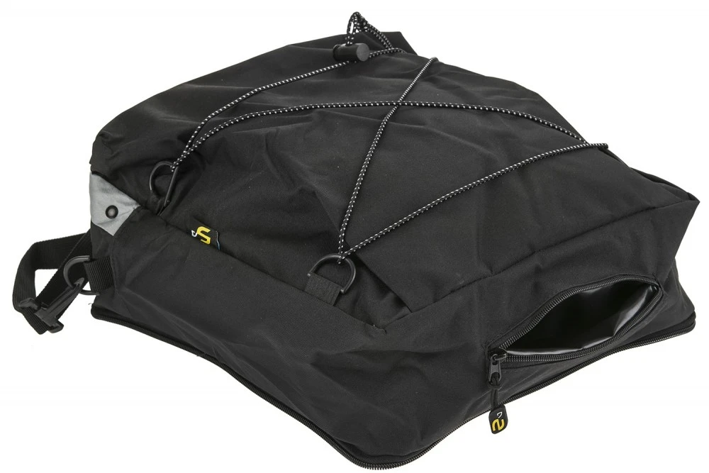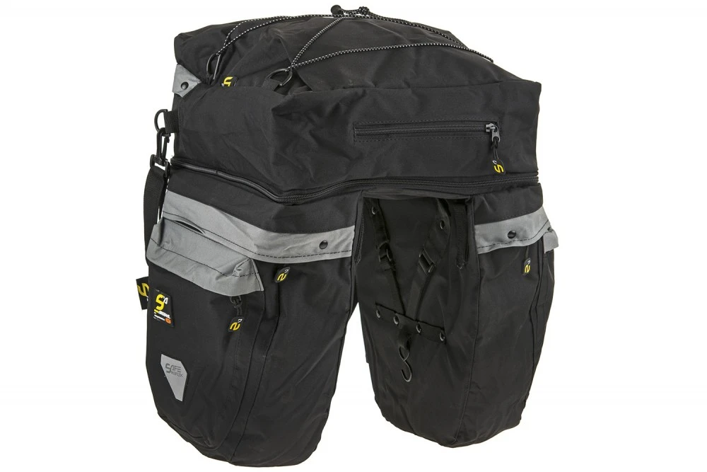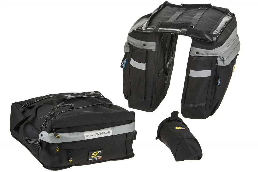 Practical and spacious tribrahna for your trips. 2 side pockets of 10 l and a 15 liter, removable sleeping bag.